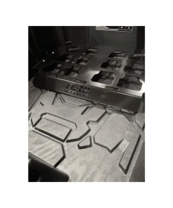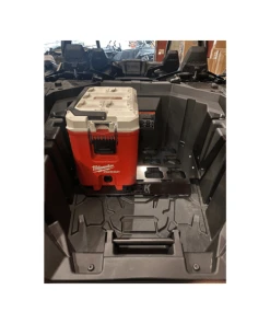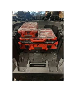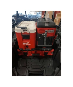 Our Milwaukee Packout Mount is the perfect storage solution. This mount uses existing mounting holes so no drilling is required. You can purchase our mounting system to bolt this packout mount directly to your bed. This is a very simple install. We CNC Laser cut our Milwaukee Packout Mount in-house from 10 gauge P.O. steel then powder coat it black.