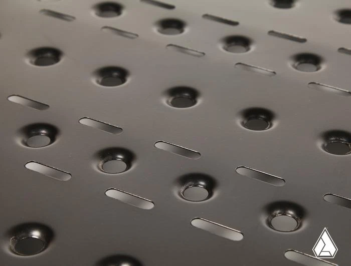 The Assault Industries Adventure Rack, formerly known as the spare tire rack, has been completely redesigned to be one of the most utilitarian products we’ve ever made! The original spare tire rack was a pioneering development that enabled riders to effortlessly move their tire out of the way to access bed contents and securely lockdown to the bed providing adequate rearview clearance. The new design offers the same great functionality as before but with many changes and upgrades.