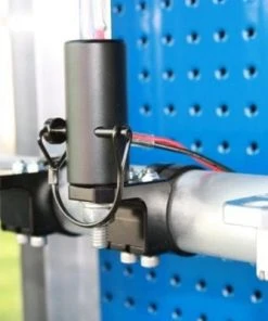 This horizontal flag mount has an industry-standard 0.5-inch hole on the top and is machined with two of our strap clamps holding it so that it will not rotate on the bar at high speeds.