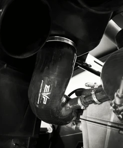 EVP’s new proprietary HFI design is offered in three unique kits tailored specifically for Stock turbochargers, EVP Dynomite and Desert Storm turbo systems. The EVP HFI features a free-flowing design that supplies smooth, uninhibited airflow to the turbocharger inlet. The low-restriction/high-flow filter element, EVP pre-filter and smooth silicone elbow tubes with gradual diameter taper all result in greater airflow efficiency, which means MORE POWER!