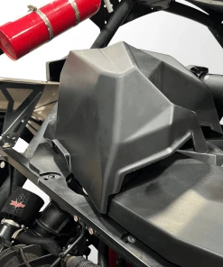 Don’t limit your engine’s power output potential with a restrictive OEM airbox! The all-new EVP High Flow Intake (HFI) Kit for Can Am Maverick X3 turbo (all models) solves the inherent issues with the OEM intake system by delivering smooth, undisturbed airflow to the turbocharger and increasing airflow which translates into MORE power! (5-15 HP Depending on application / boost level) Turbochargers are most efficient when the air entering the inlet has the least amount of restriction as possible. The OEM airbox, due to its canister design, is not only restrictive, but the air entering the compressor section of the turbo is turbulent. These two factors limit the power the engine can make, particularly on big turbo/high-horsepower vehicles.