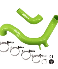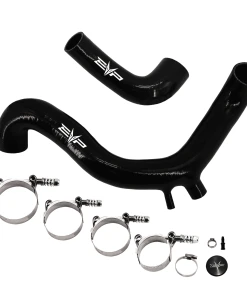 EVP’s direct replacement reinforced Silicone Charge Tubes have been burst tested to over 80 psi and come with high-strength T-Bolt Clamps for the throttle body and both sides of the intercooler (turbocharger clamp stays OEM). Includes Blow-Off-Valve (BOV) port and an extra port for a boost gauge.