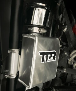 Total Performance Racing Industry (TPR) has the ultimate solution to combat the excessive crankcase pressure and subsequent oil blow-by issues RZR XP platforms often experience. The OEM breather system recirculates the crankcase blow-by back into the intake system, which also allows oil to be carried out and burned off due to the proximity of the oil pan. This leads to running lower oil levels and potential issues like rod bearing failure, among others.