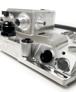 TPR’s Oil Breather Kit solves this problem by integrating a multi-chambered tank designed to catch and separate oil from fuel and water vapor, and then recirculate the oil back to the crankcase to eliminate oil waste. The water/fuel vapor collects in its own chamber separate from the oil to simplify the draining process. This kit also includes the billet TPR Breather Block, a direct replacement for the OEM cast part that allows you to install larger and additional breather lines.