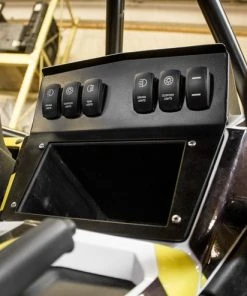 The HMF Switch Panel installs over the current dash panel on the Yamaha YXZ 1000R. The Switch Panel can hold 6 switches for lights and auxiliaries or other standard gauges. The aluminum dash panel also keeps the stock glove box intact so no functionality is lost. Available in Black powder coat, the Switch Panel adds functionality to the YXZ 1000R and gives it an intense look.