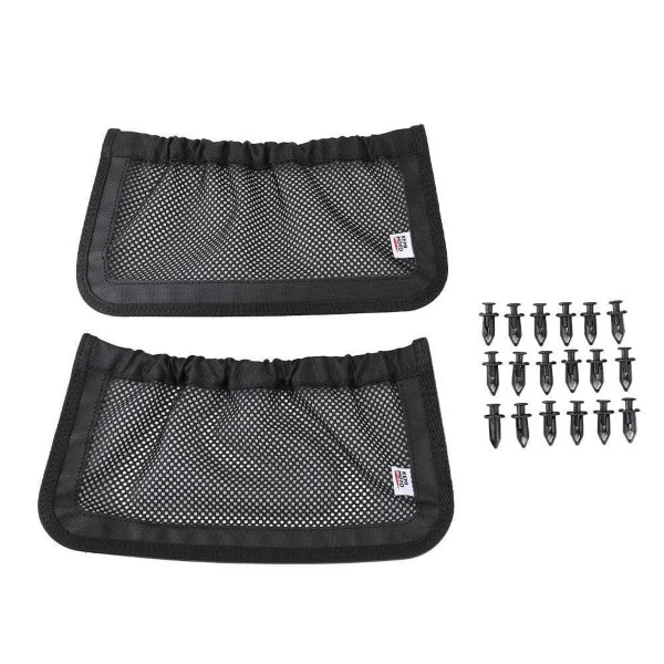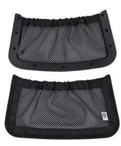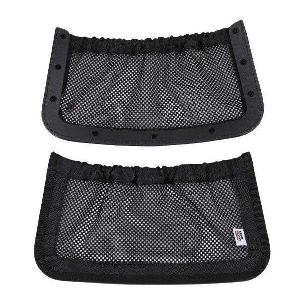 - Perfect material. The rear storage nets are made of durable polyester fabrics that wonβt discolor, you will have the right amount of stretch to put things in and get them out.