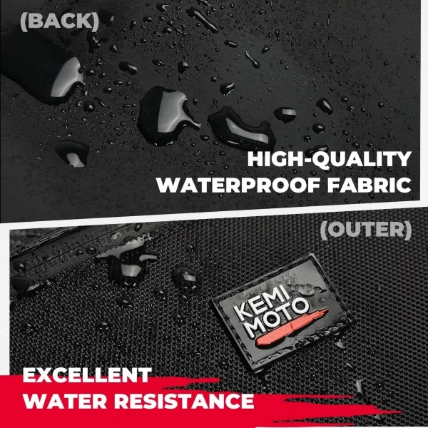 - Waterproof Double Zipper:Â KEMIMOTO bag is designed with a double-ended waterproof zipper. Extended zipper pulls for easy operation with gloves. With 1680D water-resistant material, so mud and rain do not easily penetrate the bag.