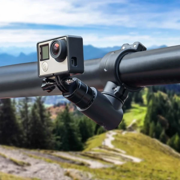 The rotatable camera handlebar mount is compatible with GoPro, allowing 360-degree rotation for your shooting from different angles. keep the camera in the place you want.