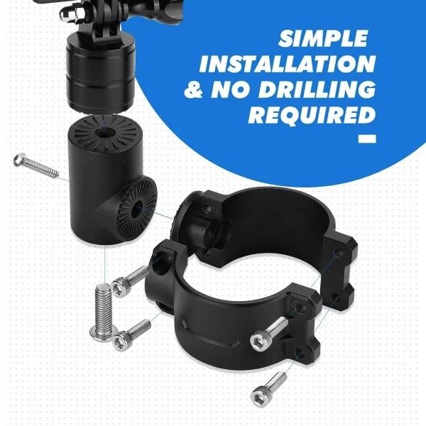 KEMIMOTO Camera Mounting Kit GoPro-friendly, with a mounting range of 1.75 to 2 inches for the roll bar. in addition compatible with Polaris, Can-Am, and Kawasaki models Any and all 1.75-2.0″ Roll Bar models. A sturdy camera attachment that can withstand the rigors of mountain biking, motocross, the seat post, the waves, and other extreme sports. Compatible with the following go-pro: