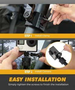360 Degree Rotation: The mounting clamp & camera holder are all fully adjustable which means that you can ajust to the angle that fits your style. This UTV camera holder is compatible with GoPro Hero 9 8 7 6 5 4.