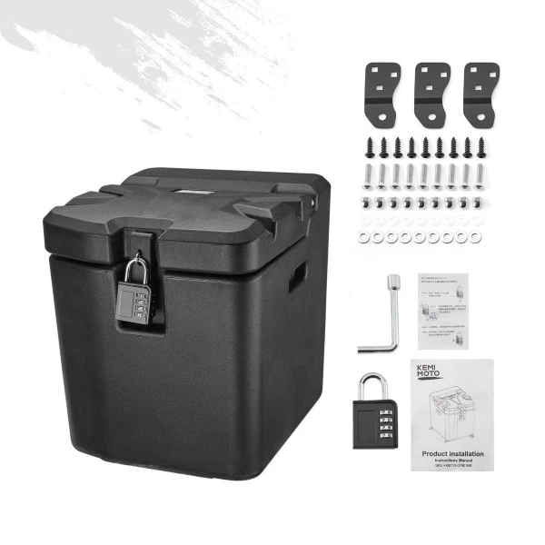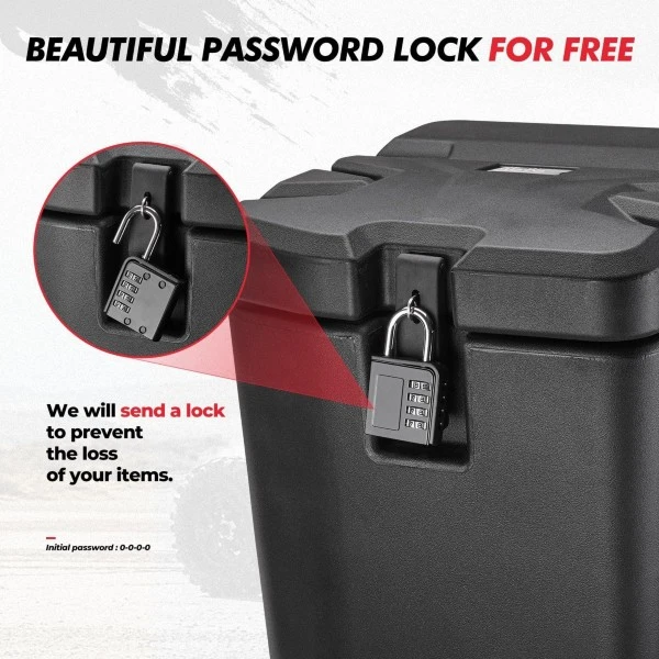 This toolbox is about 26.5L, you can store clothes, maintenance tools, gloves, binoculars and other items. Additional combination lock can protect your box from stolen.