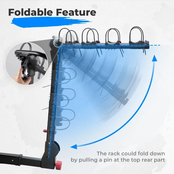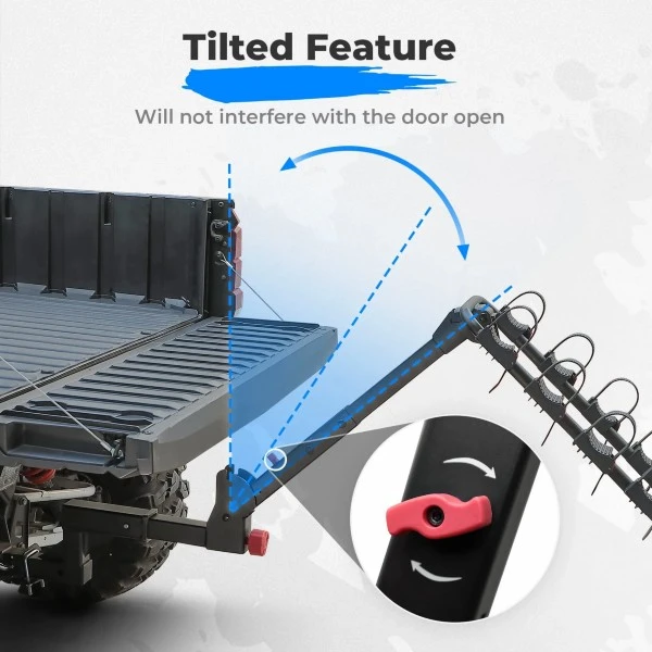 Locking the bicycles rack by simply tightening the knob at the bottom. Thanks to its sturdiness, this hitch rack for UTV could handle up to 165 pounds, which is equivalent to 4 bikes in maximum or other outdoor tools.