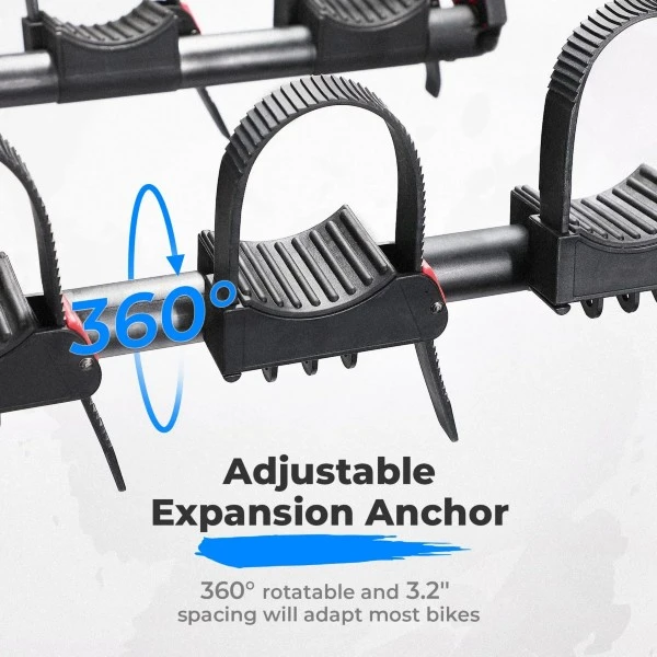 The ratchet straps will keep the bicicletas frame in its cradle. The 360°rotating cradle and 3.2” spacing will adapt most bikes’ frames and prevent your bike from scratching each other.