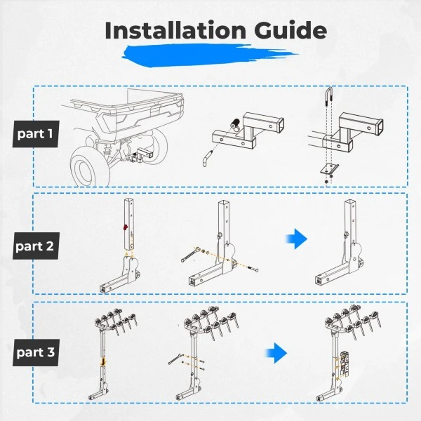 This UTV bike rack comes with a detailed installation guide. Then connect the bike hitch rack to the hitch receiver at the back. What’s more, if disassembling the connector between the hitch rack and hitch receiver, you can also use it on SUV or truck.