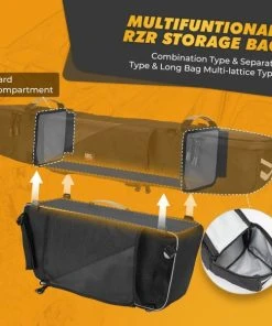 Turbo rear cargo bag compatible with rzr has multiple uses, combination type & separate type & long bag multi-lattice type. The upper and lower hard compartments can prevent falling if you put anything heavy on the upper pocket, keeping the storage space below and the shape at all times.