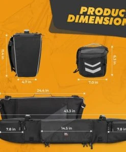 1000 xp cargo bag compatible with rzr consists of a long bag, a bottom bag and two pockets. The capacity of the long bag is 30L, which is ideal for a tow strap, first aid kit, fishing rod, repair kit, etc. The capacity of the bottom bag is 21L, storing sleeping bag, clothing, backpack, helmet, etc. Two pockets above the zipper can store small items, such as keys, cards, openers, cellphones, etc. The three-dimensional design saves space in the rear bed box, which can store other bags, coolers, etc.