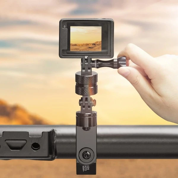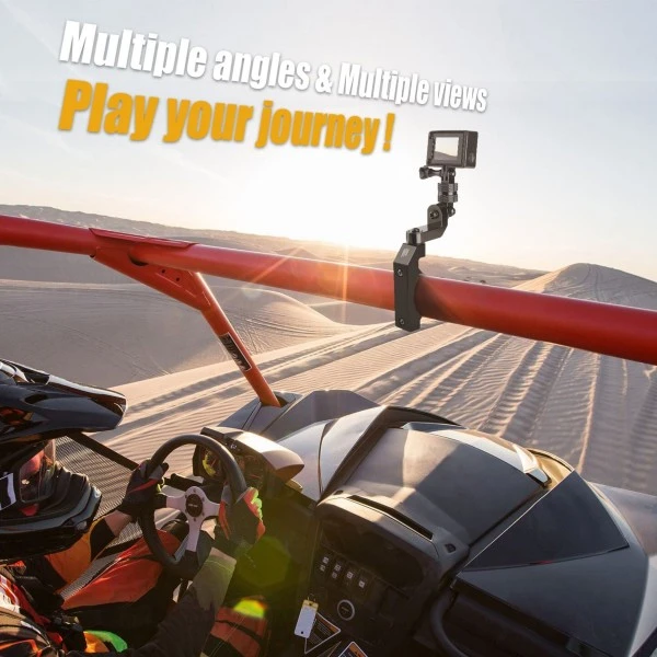 Wave-shaped Clamp: A specially designed wave-shaped fixture to maintain stability, so that the roll cage camera mount is firmly fixed on any roll bar. The bolt with three gaskets keeps the videos of landscapes and people smooth even on bumpy roads.