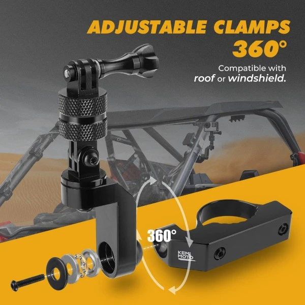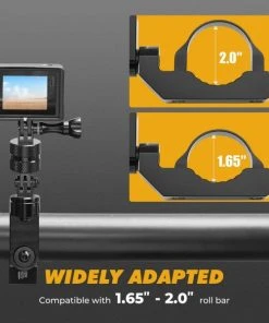 360 Rotatable Fixture: You can put your action camera holder on the horizontal or vertical bar as you like. It can be installed on any 1.65″-2″ roll bar such as UTVs, ATVs, trucks, boats, motorcycles, bicycles. The ultra-thin fixture allows you to install it even if your UTV has a windshield and roof.