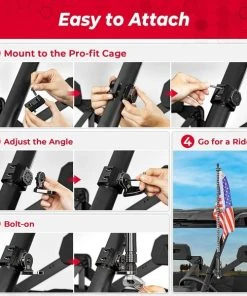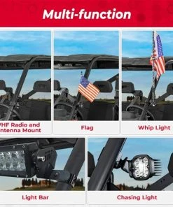 Wide Application:Â Universal fits all Profit cage UTVs. The whip light mounting brackets will be compatible with Polaris Ranger General Can-am Defender Maverick Trail/ Sport and Can-am Commander 2021+. The flag mount can be mounted on all channel-shaped bars. You can also use these pro-fit mounting brackets to hold your off-road led light bars, CB radio antennas, whip light, etc.