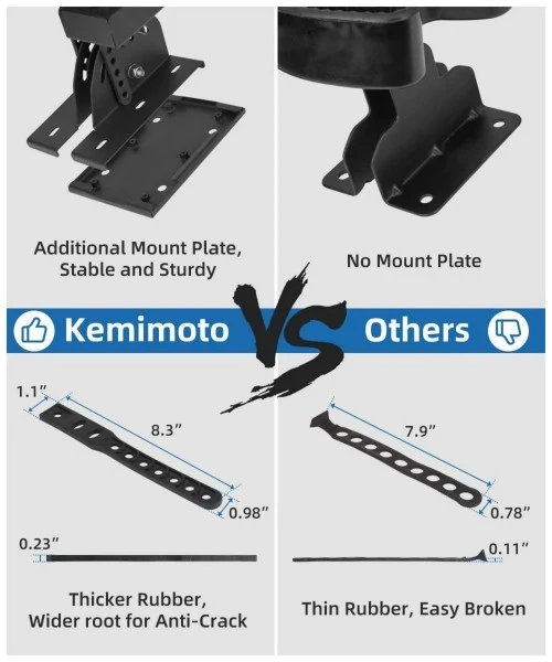 Anti-Wobble Feature:Many racks will vibrate when you riding in rough terrain, it is noisy and destroys your guns easily, kemimoto gun holder is more sturdy and stable because of the steel mounting plate and high-quality material.