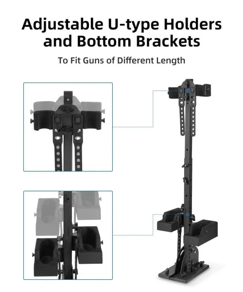 Adjustable Height:U-type holders and bottom brackets are all can be adjusted to different height to fit your guns or other tools better. You may adjust them according to your need.
