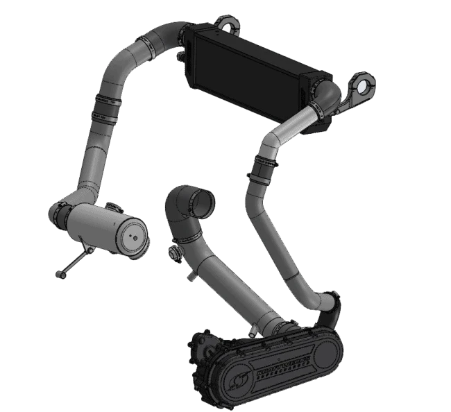 The RZR XP® Supercharger System features a hefty sleek black intercooler and two powder-coated aluminum intercooler pipes that are sure to make heads turn! This groundbreaking RZR XP® supercharger kit is engineered to propel you into the winner’s circle.