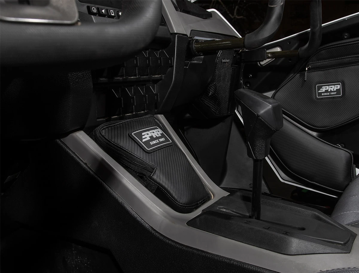Keep small items clean and secure while you ride with PRP’s Console Bag for Polaris RZR PRO XP. The bag will safely contain your belongings and keep them from jumping out of the center console as you ride. Made from durable, puncture resistant vinyl coated nylon and marine-grade vinyl that is water resistant. The Console Bag is great for holding onto cell phones, wallets, sunglasses, and helps to keep your items protected from dust/mud/splashing water. The bag also features an opening that allows you to access to the 12V charge port. The Console Bag attaches quickly and easily with adhesive hook&loop strips. Sold individually.