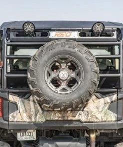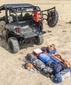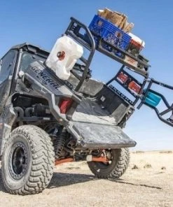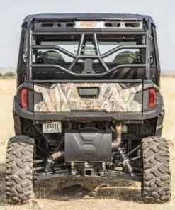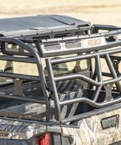 This Polaris General Expedition Rack™ was designed to add more versatility to your machine by providing a tailgate to keep your gear secure. The tailgate can be padlocked to keep your possessions safe from thieves and has a gas strut to hold the tailgate open and out of the way when you’re grabbing your gear or using your dump bed. The factory dump bed remains fully functional even with the rack installed – just remove your spare tire from the tailgate before dumping. The RBO Expedition Rack™ is made from 1.5” diameter steel tubing and has a rugged, powder-coated finish.