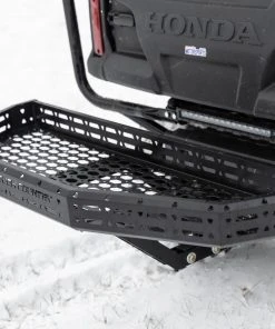 Durable Storage Solution! Rough Country’s Rear Hitch Cargo Rack is designed to fit a 2″ hitch receiver and can be easily mounted and removed using the included hitch pin. Multiple hitch pin locations allow you to choose the best placement on your vehicle to keep it clear of road obstacles while remaining at an easy loading height. Crafted from 14-gauge steel, the cargo rack’s powder coat finish helps prevent rust, chipping, and corrosion, so your rack looks new season after season.