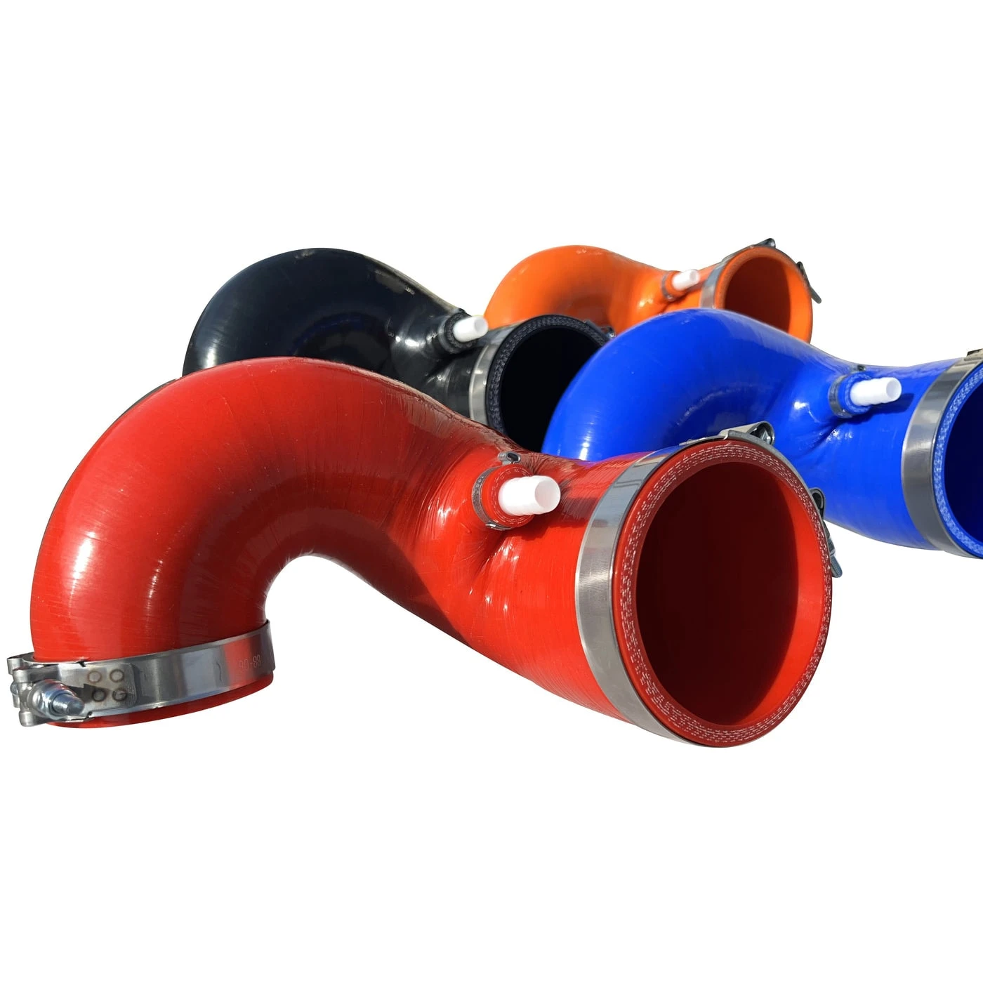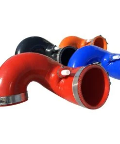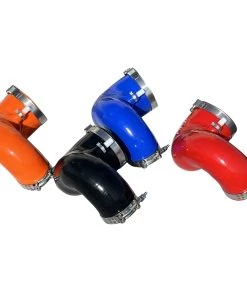 The airbox to throttle body intake boot is made out of thin soft rubber with no reinforcement to stop itself from collapsing in on itself when warm and under a heavy load. We have fixed this flaw with an extremely heavy-duty 8.5mm thick 5Ply silicone tube that is not only stronger but also oversized. When designing this we removed the factory restrictive to airflow imperfections & smoothed the transitions and clearance points to the max providing the absolute most intake airflow and velocity possible. Each tube includes stainless Silicone Safe T-Bolt clamps and a factory crankcase ventilation port.