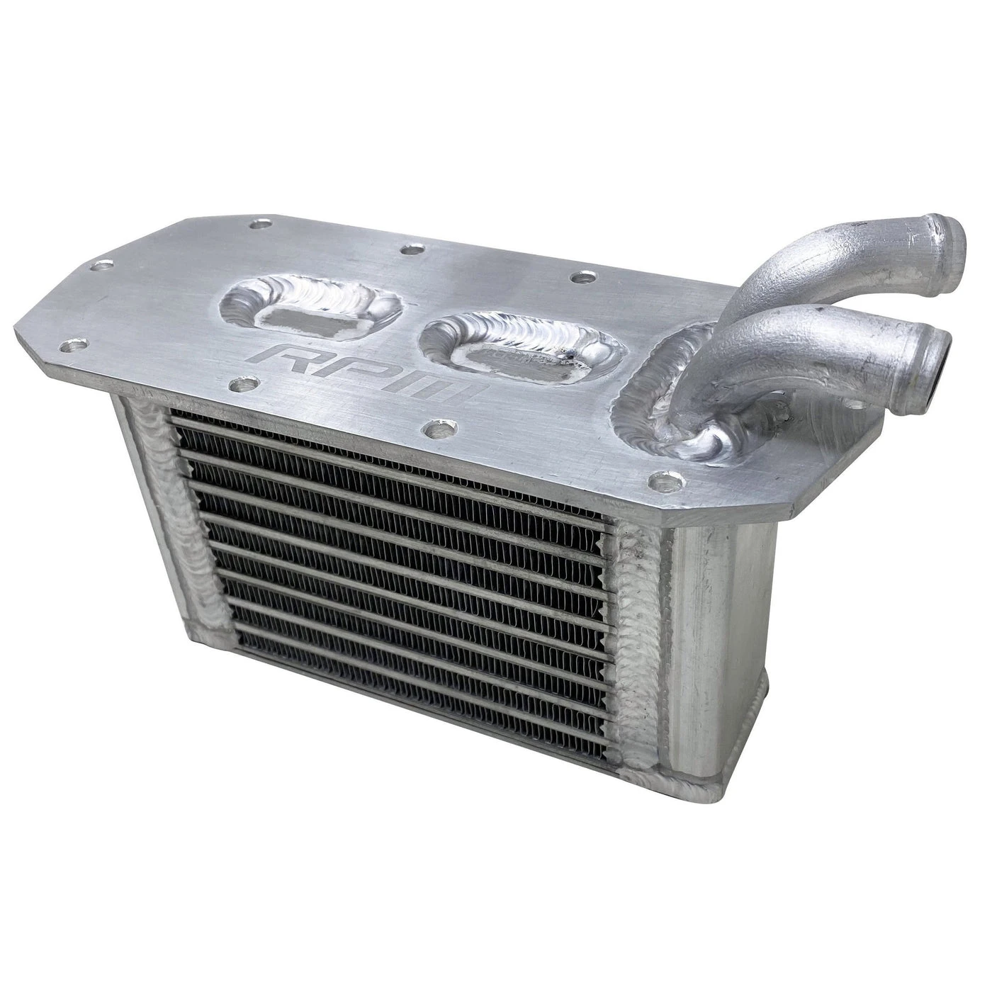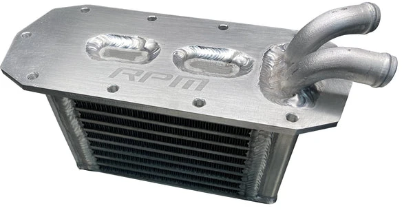 After a lot of designing, a lot of testing, and a lot of headaches from failed stock intercoolers, RPM has stepped up once again to provide a Big Core, high flowing, Billet aluminum intercooler for the RZR XP Turbo and XP Pro Turbo. This intercooler, although is a direct drop-in replacement, is 5% larger resulting in a massive 25% efficiency gain. These huge gains mean lower IATs and more, safer power whether it’s a stock machine or a big turbo upgrade! It’s no secret the factory intercooler is a failure-prone piece that once failed causes catastrophic engine damage from coolant consumption and often hydro locking bending resulting in a bent rod. All these issues and worries are easily eliminated with the RPM Big Core intercooler. Along with being a drop-in replacement, this intercooler utilizes the factory hose so no need to cut or modify your hoses to make this work that others require.