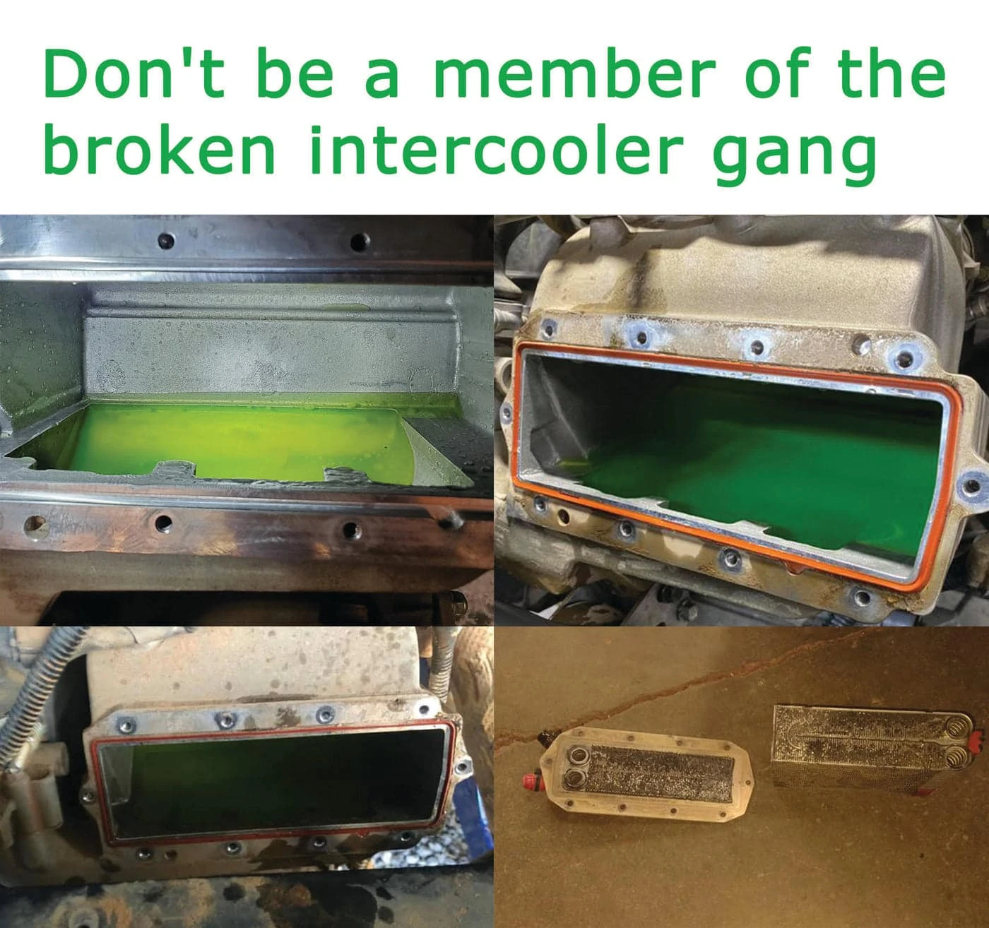 Don’t wait to join the broken intercooler gang. Once they fail and suck coolant through a motor at high RPMs, it’s too late!