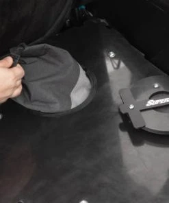 Our Can-Am X3 rear seat conversion kit comes with two 1/2” UHMW panels and gives you the option to replace one seat or both. The panels bolt securely to each seat base and have convenient notches to hook ratchet straps into. It also includes pop-out hatches to give you quick access to the floorboards for even more cargo space. But we didn’t forget about your pup—this kit doesn’t block your seatbelts so you can still use your dog’s seatbelt harness.