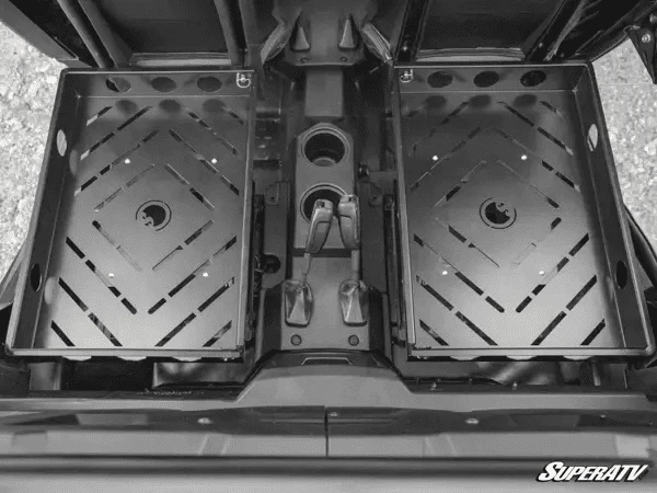 This RZR rear seat delete kit does exactly what you need it to. You can completely convert your back seats to a single large cargo rack, covering up your rear center console in the process. Or you can delete one seat and keep your third seat intact. You can also keep your center console uncovered and convert each seat to its own separate rack. Not to mention, the steel racks bolt directly to your seat base and gives you tons of tie-down points for all the cargo you’ve got.