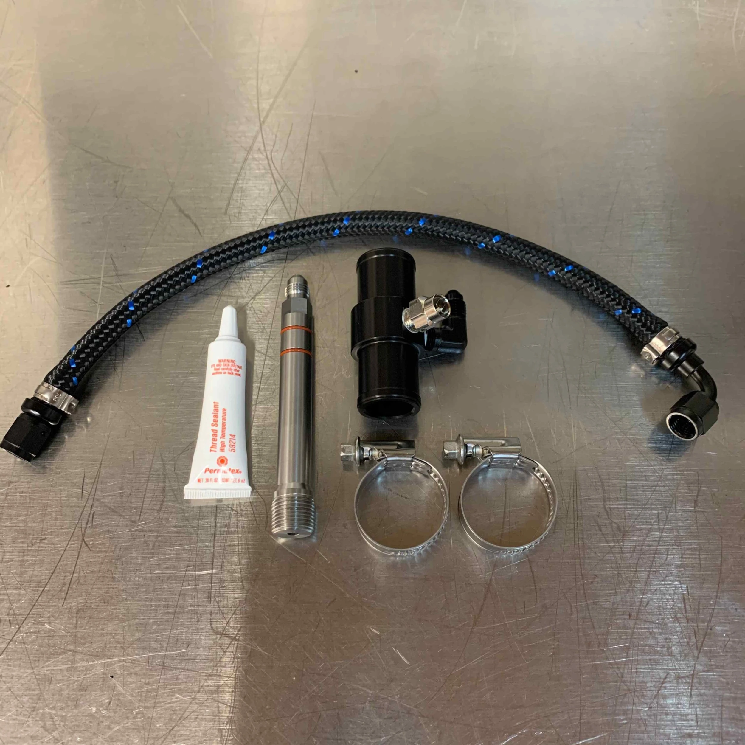 The TPR010 valve cover kit allows you run our full flow water kit design that eliminates the deadly air pocket that can form in the upper portion of the cylinder heads water jacket causing 80% of all head gasket failures. This allows a constant flow of coolant going through the highest point of the water galley in the cylinder head bleeding off any air or steam that might build up while the motor is running. This kit easily plumbs right into your radiator return line hose coming off of the thermostat housing. After installing this kit you’ll now be able to bleed your coolant easily and accessibly off your thermostat return hose at the rear of the car.