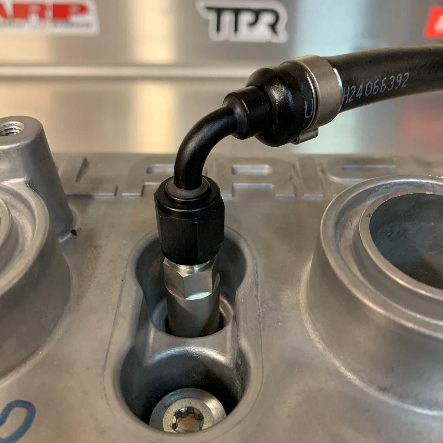 This fitting will replace the factor coolant bleed fitting and allow you to connect a -4 AN fitting instead of the factor plastic clip on style. Made from 303 stainless steel for corrosion resistance. Direct replacement and requires no machining.